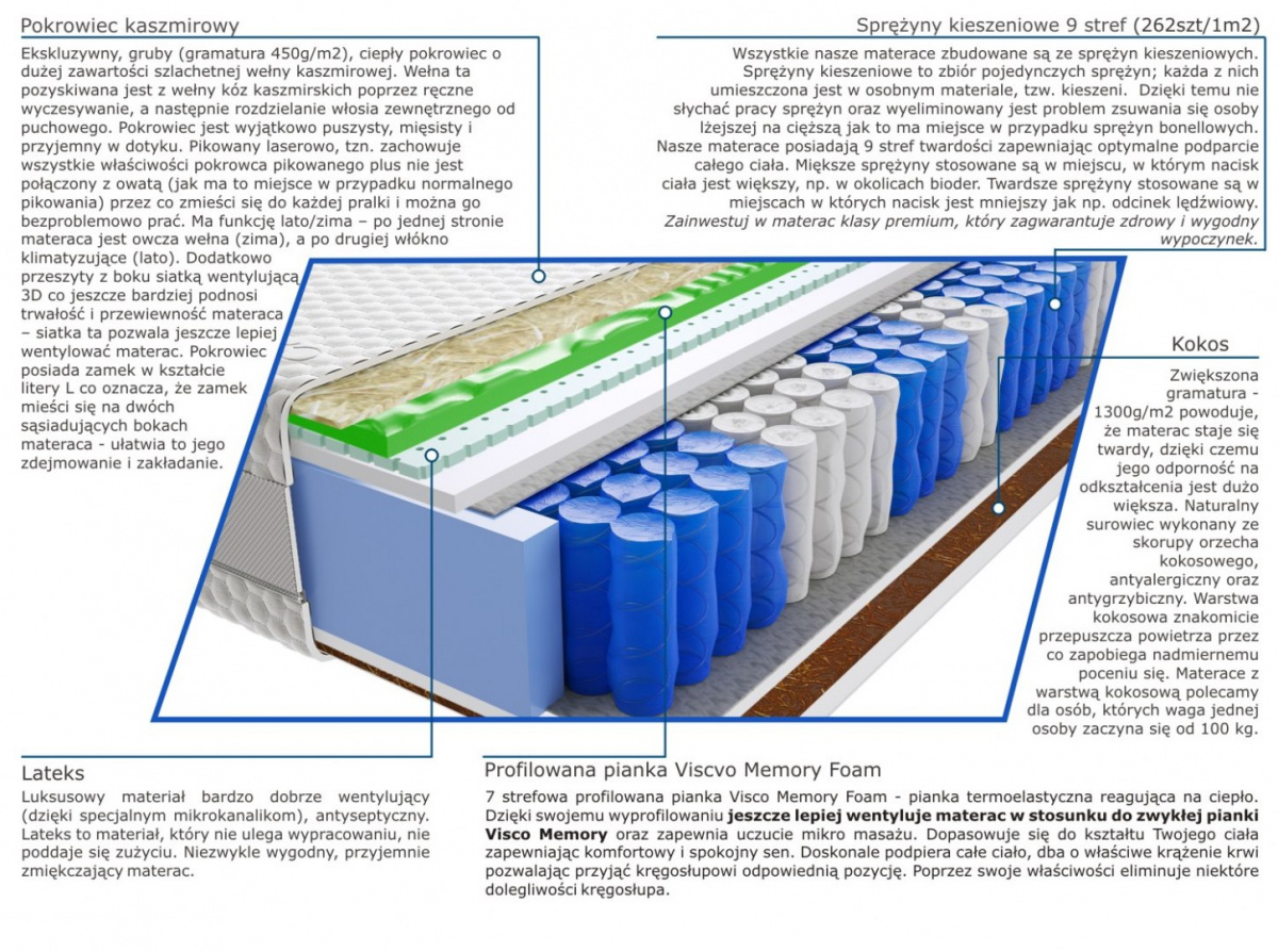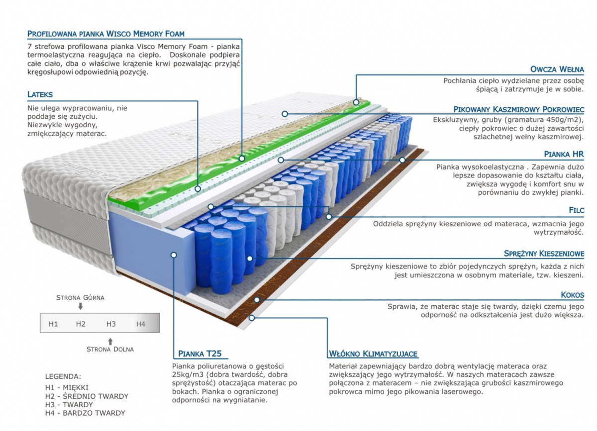 kokos, lateks, owcza-welna, pianka-hr, pianka-t25, profilowana-pianka-visco-memory, pokrowiec-kaszmirowy, sprezyny-kieszeniowe-pocketowe, wlokno-klimatyzujace