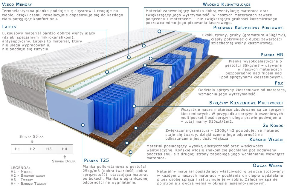 2x-kokos, konskie-wlosie, lateks, owcza-welna, pianka-hr, pianka-t25, pianka-visco-memory, pokrowiec-kaszmirowy, sprezyny-multipocket-kieszeniowe, wlokno-klimatyzujace