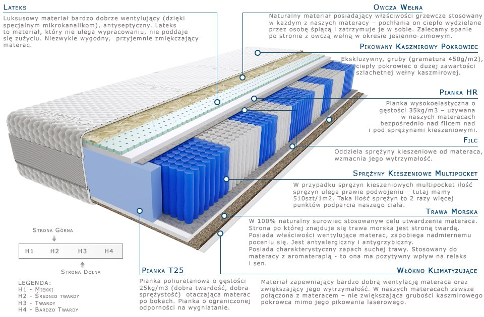 trawa-morska, lateks, owcza-welna, pianka-hr, pianka-t25, pokrowiec-kaszmirowy, sprezyny-multipocket-kieszeniowe, wlokno-klimatyzujace