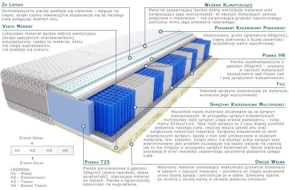 2x-lateks, owcza-welna, pianka-hr, pianka-t25, pianka-visco-memory, pokrowiec-kaszmirowy, sprezyny-multipocket-kieszeniowe, wlokno-klimatyzujace
