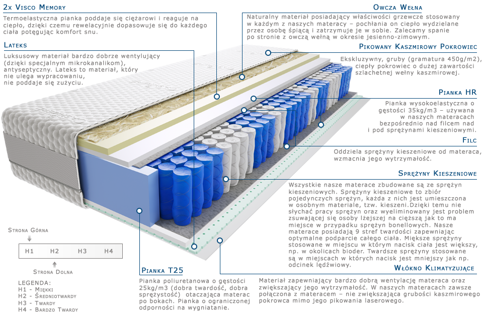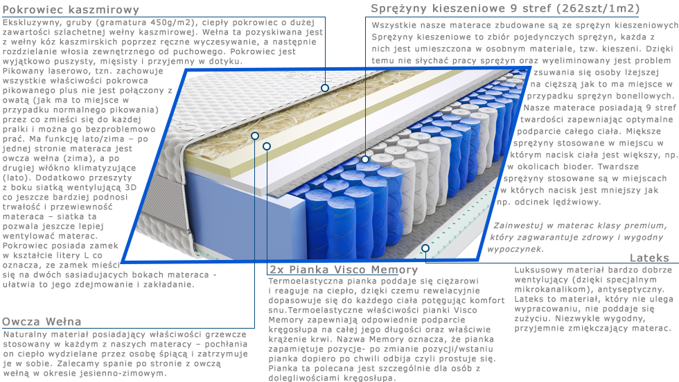 2x-visco-memory, lateks, owcza-welna, pianka-hr, pianka-t25, sprezyny-kieszeniowe-pocketowe, wlokno-klimatyzujace