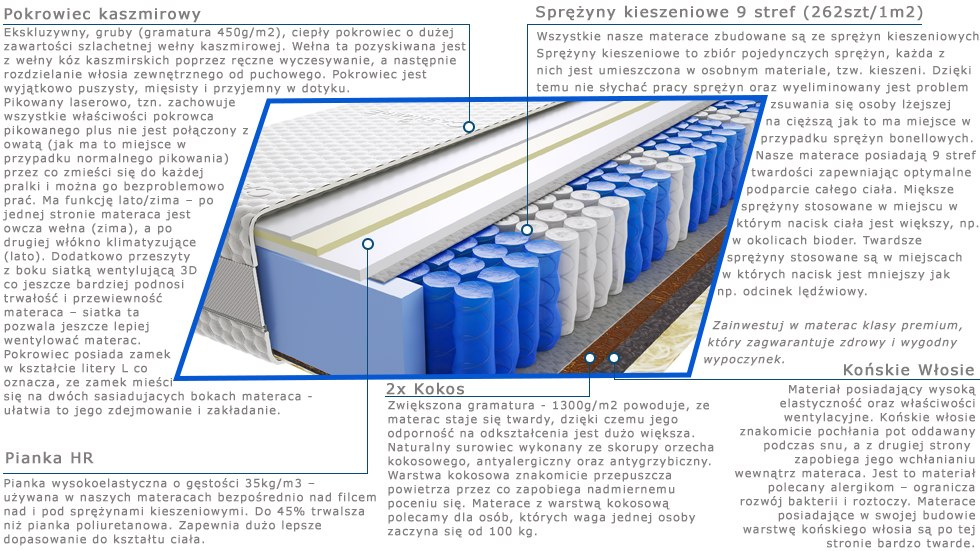 2x-kokos, konskie-wlosie, owcza-welna, pianka-hr, pianka-t25, pianka-visco-memory, pokrowiec-kaszmirowy, sprezyny-kieszeniowe-pocketowe, wlokno-klimatyzujace