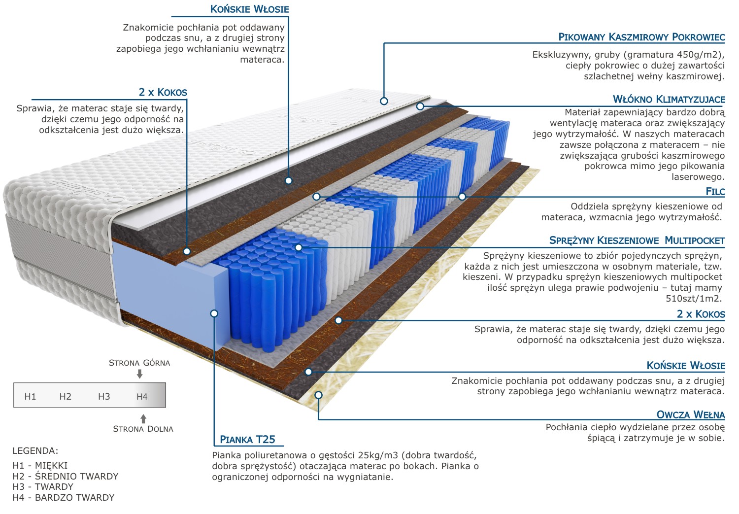 4x-kokos, 2x-konskie-wlosie, pianka-t25, pokrowiec-kaszmirowy, sprezyny-multipocket-kieszeniowe, wlokno-klimatyzujace