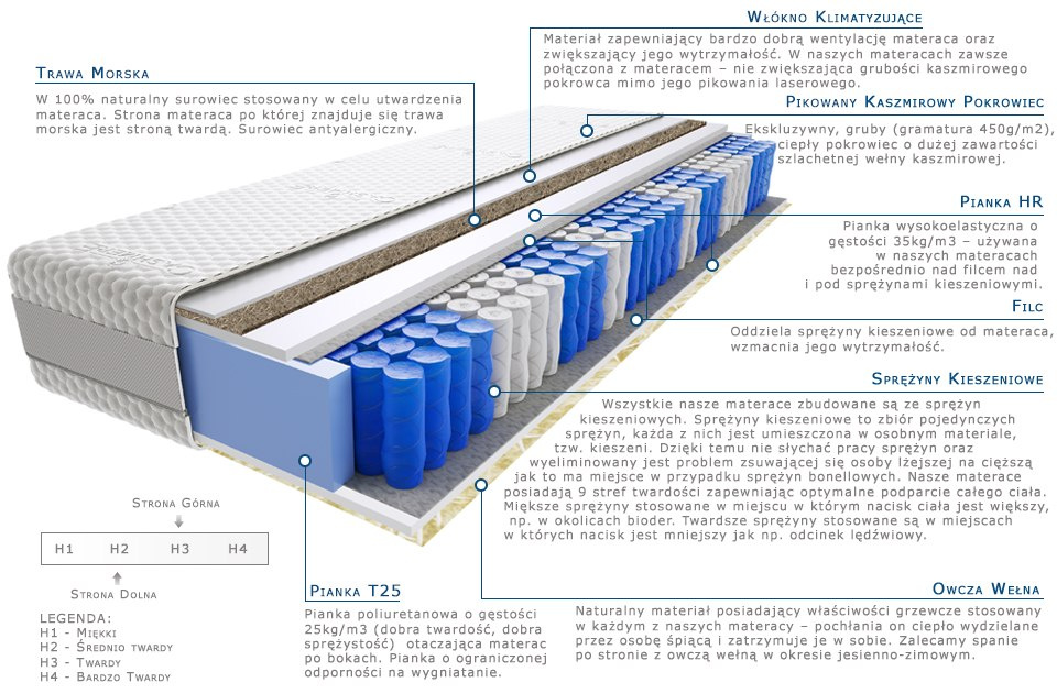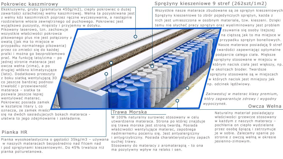trawa-morska, owcza-welna, pianka-hr, pianka-t25, pokrowiec-kaszmirowy, sprezyny-kieszeniowe-pocketowe, wlokno-klimatyzujace