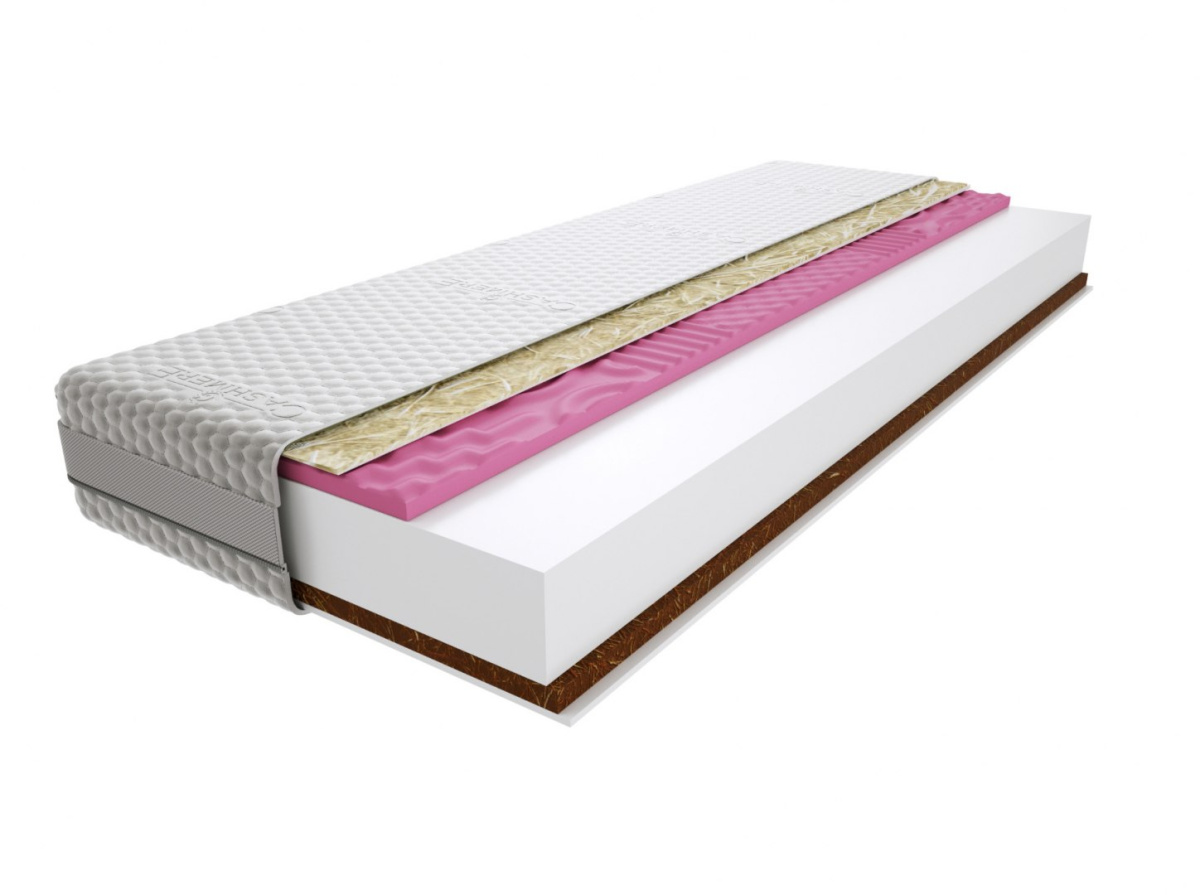 – zwiększona gramatura – 1300g/m2 powoduje, że materac staje się twardy, dzięki czemu jego odporność na odkształcenia jest dużo większa. Naturalny surowiec wykonany ze skorupy orzecha kokosowego, antyalergiczny oraz antygrzybiczny. Warstwa kokosowa znakomicie przepuszcza powietrza przez co zapobiega nadmiernemu poceniu się. Materace z warstwą kokosową polecamy dla osób, których waga jednej osoby zaczyna się od 100 kg.