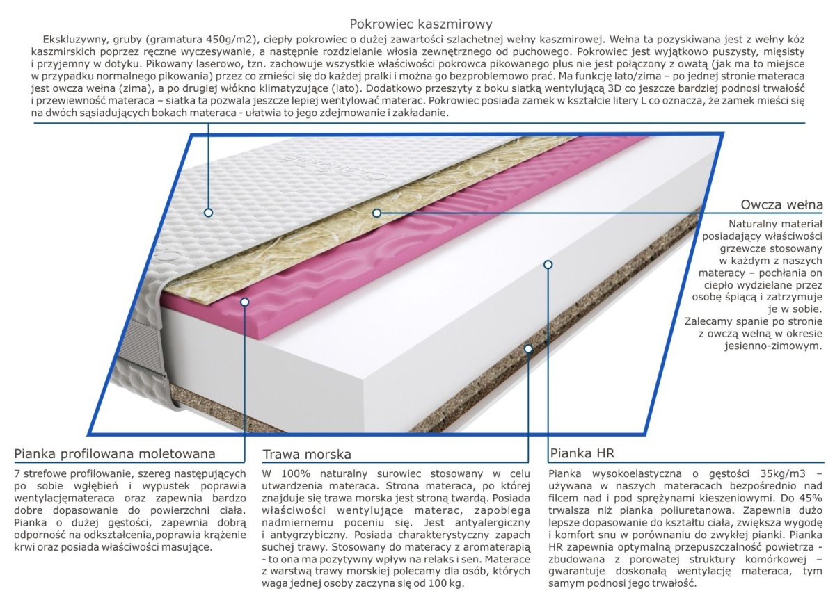 trawa-morska, pianka-hr, pianka-profilowana-moletowana, pokrowiec-kaszmirowy, wlokno-klimatyzujace