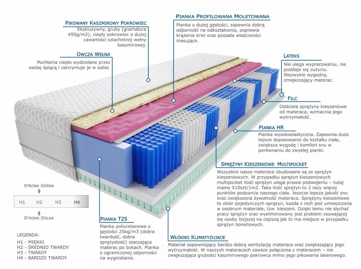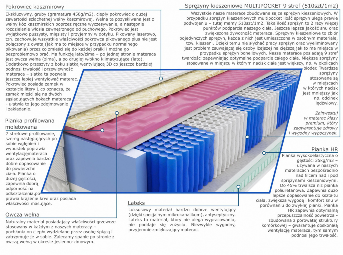 lateks, owcza-welna, pianka-hr, pianka-profilowana-moletowana, pianka-t25, pokrowiec-kaszmirowy, sprezyny-multipocket-kieszeniowe, wlokno-klimatyzujace