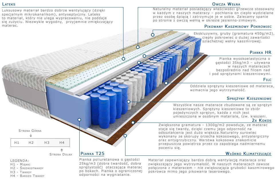 2x-kokos, lateks, owcza-welna, pianka-hr, pianka-t25, pokrowiec-kaszmirowy, sprezyny-kieszeniowe-pocketowe, wlokno-klimatyzujace