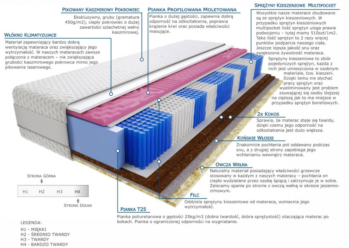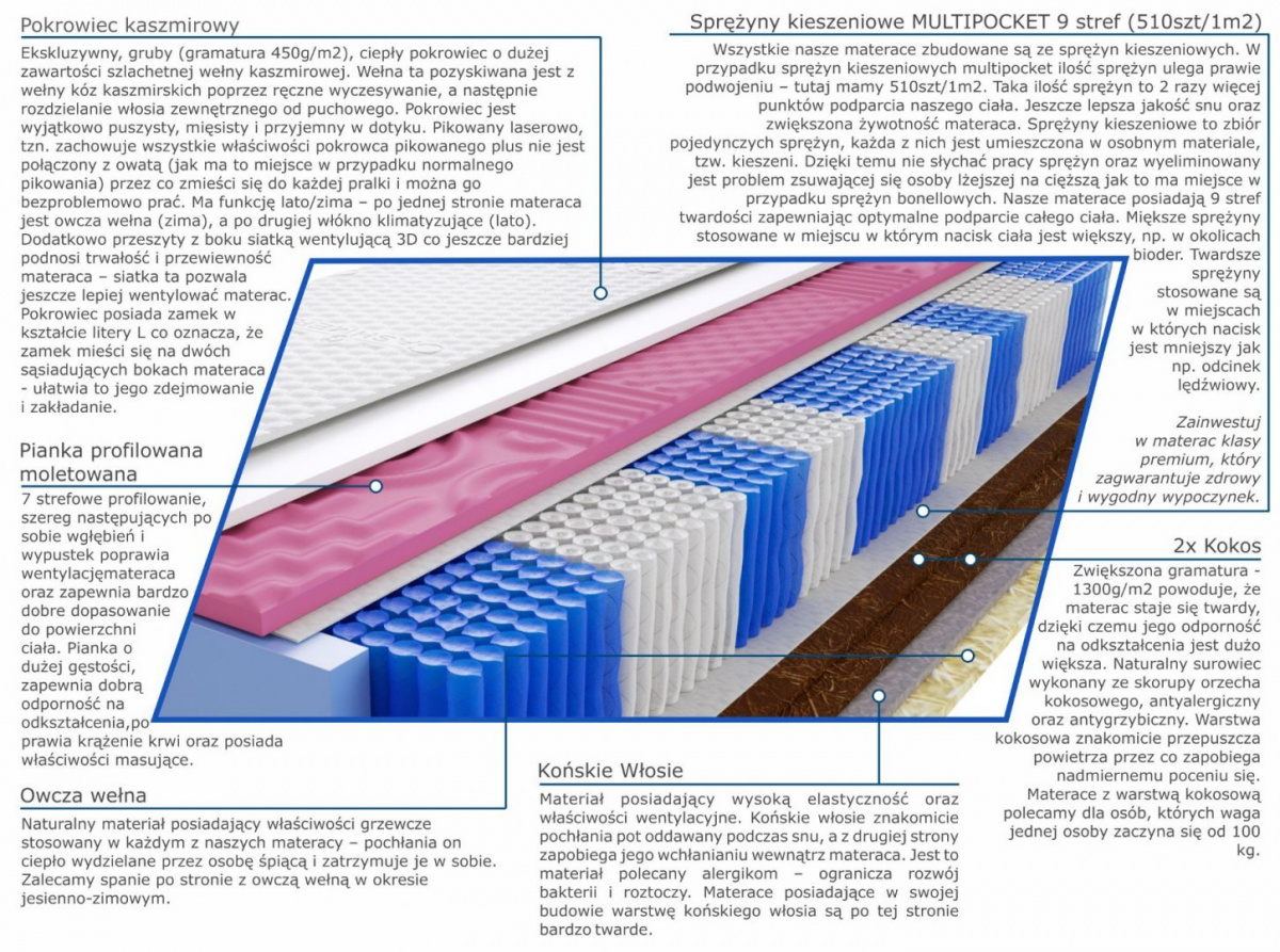 2x-kokos, konskie-wlosie, owcza-welna, pianka-profilowana-moletowana, pianka-t25, pokrowiec-kaszmirowy, sprezyny-multipocket-kieszeniowe, wlokno-klimatyzujace