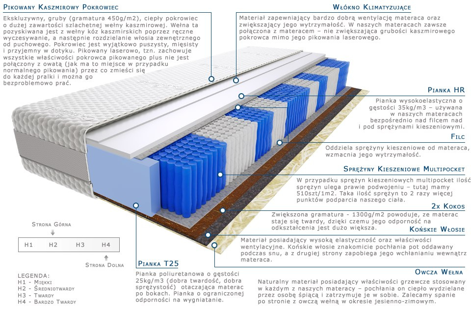 2x-kokos, konskie-wlosie, owcza-welna, pianka-hr, pianka-t25, pokrowiec-kaszmirowy, sprezyny-multipocket-kieszeniowe, wlokno-klimatyzujace